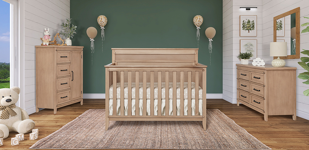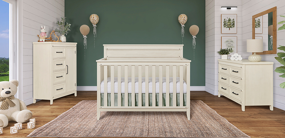 Make a safe, snug & cozy oasis for your sweet lil’ baby with the Bayfield from Sweetpea Baby. This timeless, elegant crib is crafted to grow with your little one by beautifully transitioning into a toddler bed, daybed and full-size bed (Toddler Bed & Full Size Bed Guard Rails sold separately). Adhering to the strictest safety standards, the Sweetpea Baby Bayfield 5-in-1 Convertible Crib comes with a JPMA Greenguard Gold certification and meets/exceeds the ASTM and CPSC standards. Built for durability with sturdy &sustainable New Zealand Pinewood, this solid crib makes for the perfect centerpiece in your modern nursery.
