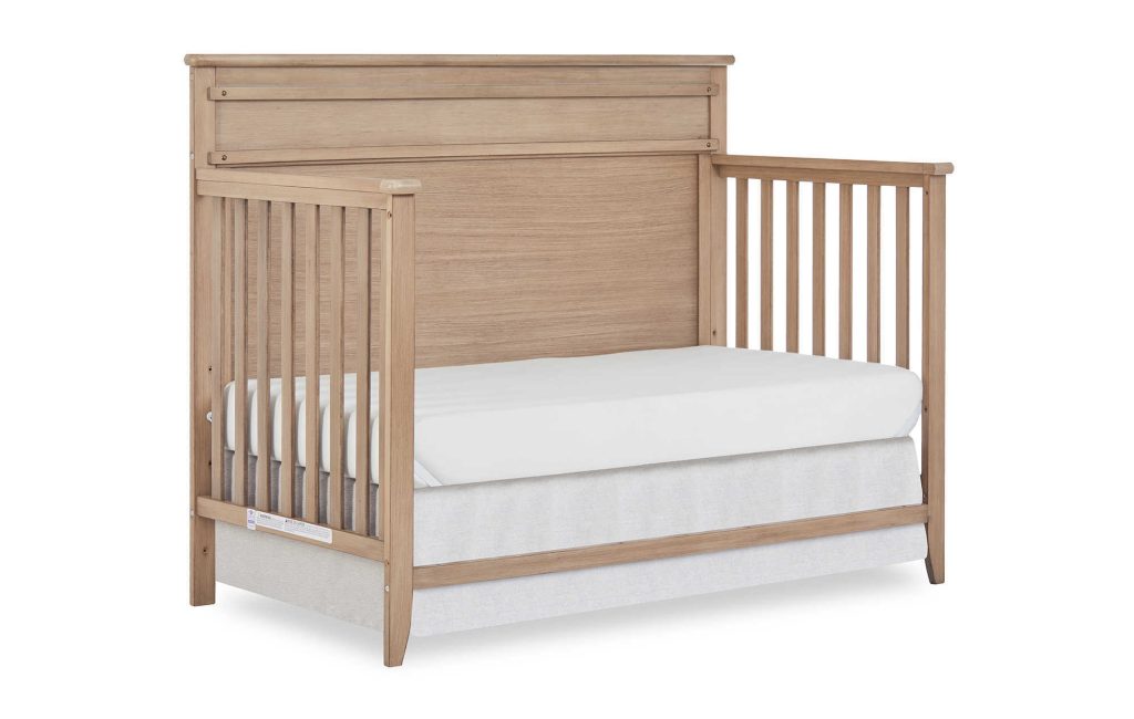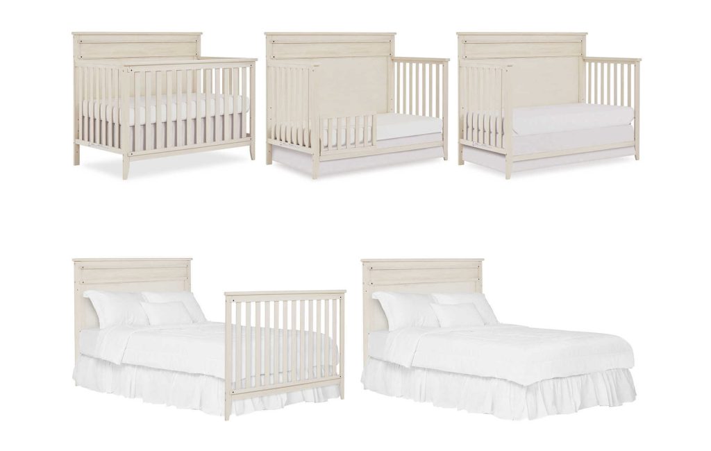 - THOUGHTFULLY DESIGNED: Easy to spot or wipe clean, the Bayfield 5-in-1 Convertible Crib ensures a no-hassle maintenance. Create a one-of-a-kind nursery space with this thoughtfully designed crib that comes in 2 uniquely charming finishes – Glazed Brush White &; Sand Dunes.
