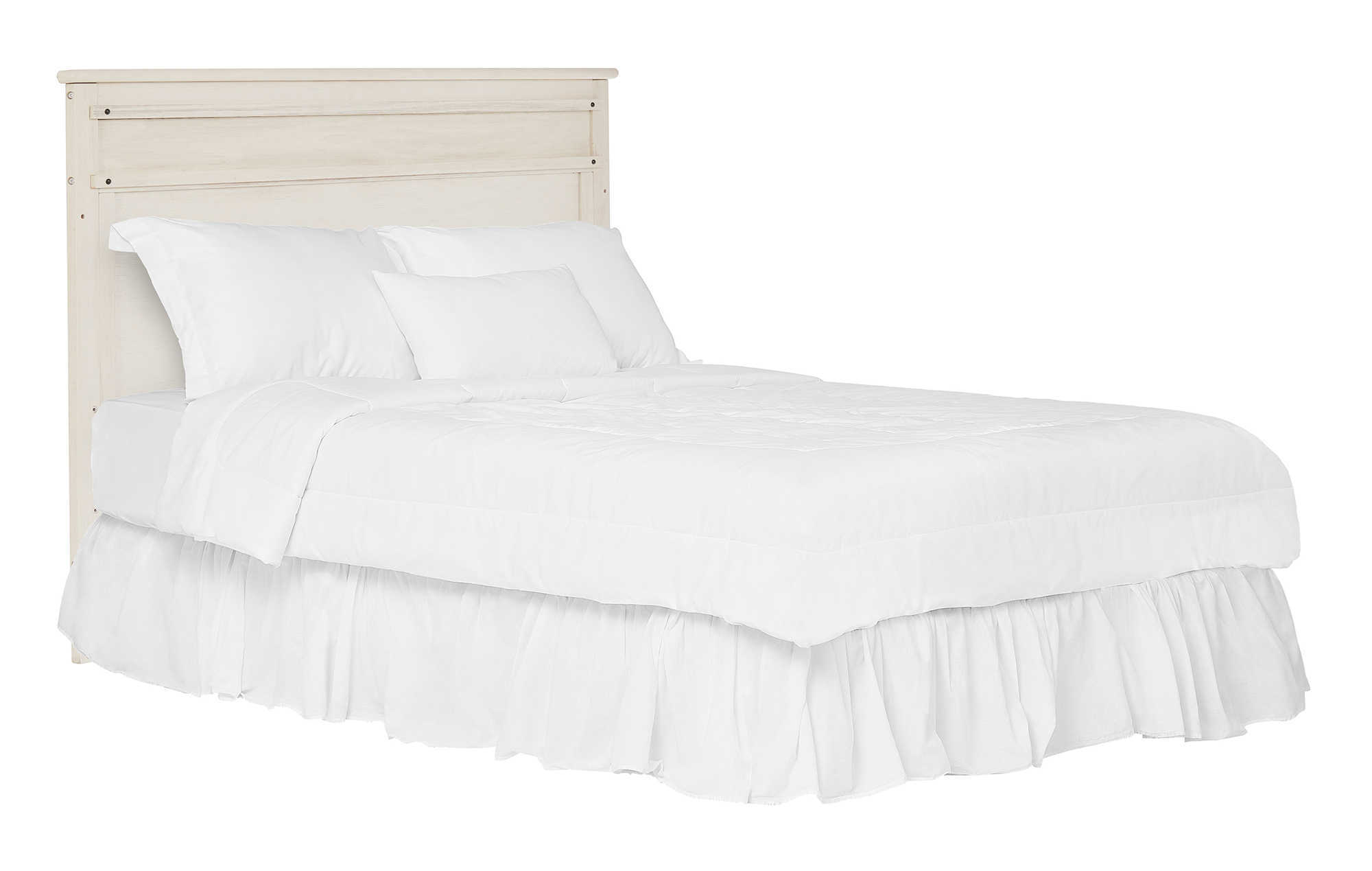Built for durability with sturdy &sustainable New Zealand Pinewood, this solid crib makes for the perfect centerpiece in your modern nursery. Easy to spot or wipe clean, the Bayfield 5-in-1 Convertible Crib ensures a no-hassle maintenance. Create a one-of-a-kind nursery space with this thoughtfully designed crib that comes in 2 uniquely charming finishes – Glazed Brush White &; Sand Dunes. Product dimensions are 55” L x 29” W x 44” H, with a weight of 51 Lbs and a maximum weight limit of 50 Lbs.