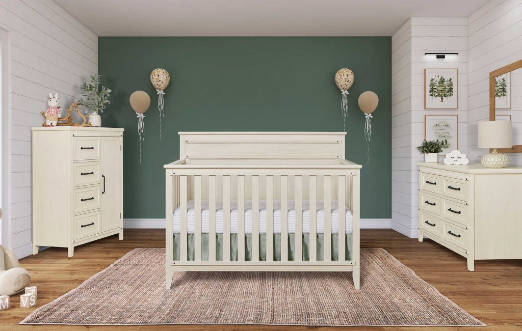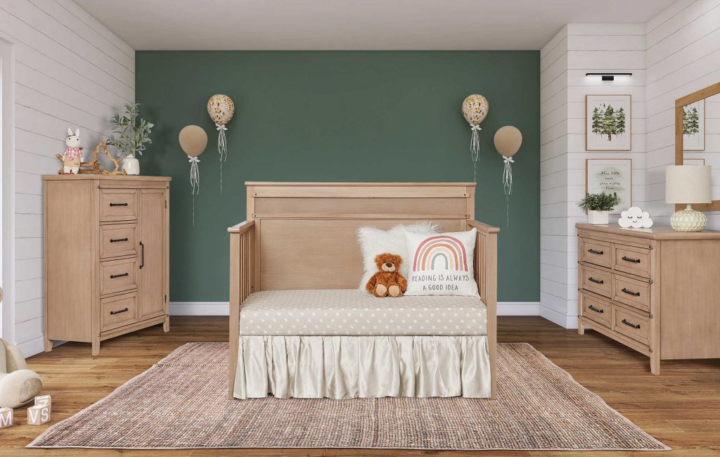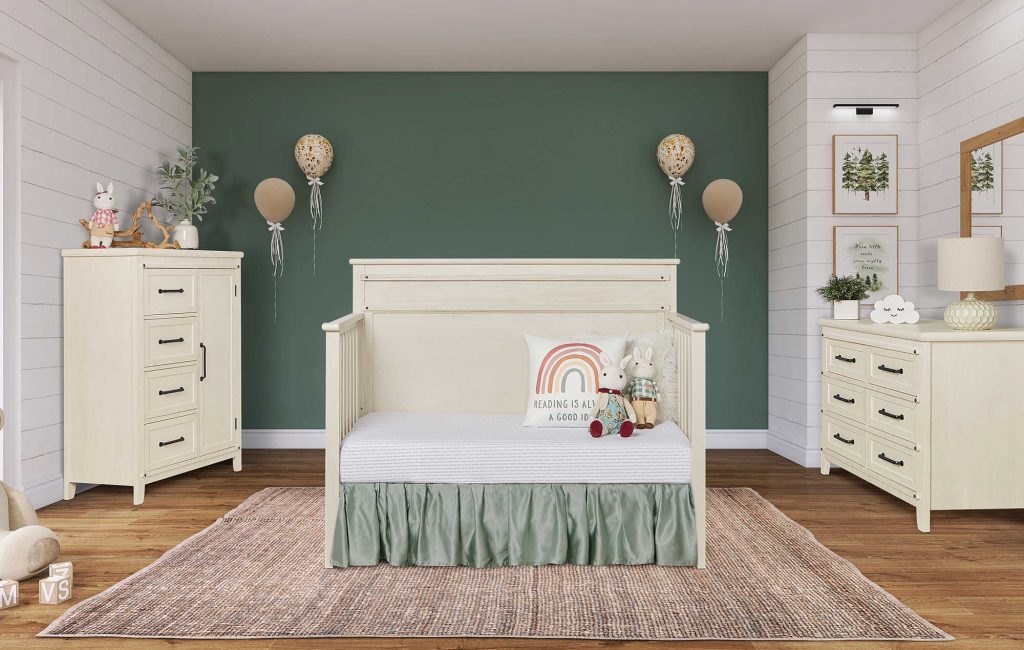 Make a safe, snug &; cozy oasis for your sweet lil’ baby with the Bayfield 5-in-1 Convertible Crib from Sweetpea Baby. This timeless, elegant crib is crafted to grow with your little one by beautifully transitioning into a toddler bed, daybed and full-size bed (Toddler Bed & Full Size Bed Guard Rails sold separately). Adhering to the strictest safety standards, the Sweetpea Baby Bayfield 5-in-1 Convertible Crib comes with a JPMA Greenguard Gold certification and meets/exceeds the ASTM and CPSC standards.